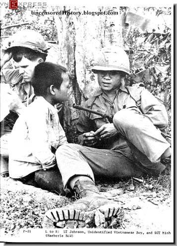 An American soldiers chats with a little Vietnamese boy before the killings started. |
